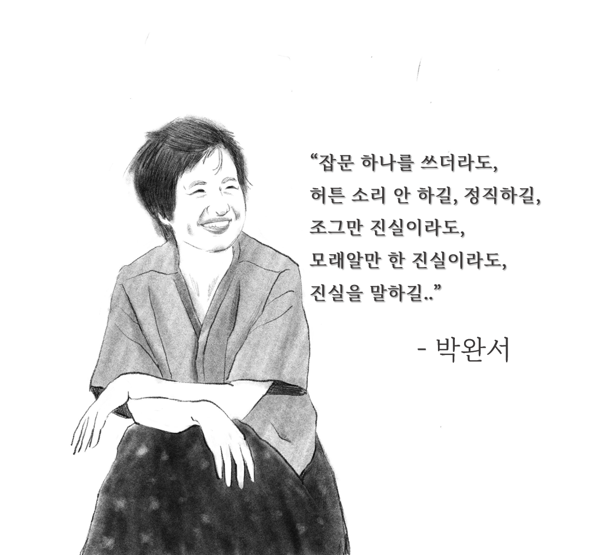 '자랑할 거라곤 지금도 습작기처럼 열심히라는 것밖에 없다. 잡문 하나를 쓰더라도, 허튼소리 안 하길, 정직하길, 조그만 진실이라도, 모래알만 한 진실이라도, 진실을 말하길, 매질하듯 다짐하며 쓰고 있지만, 열심히라는 것만으로 재능 부족을 은폐하지는 못할 것 같다.'
